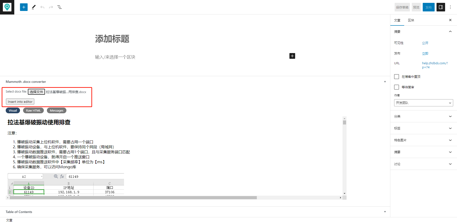支持直接上传word文档,自动读取标题,并上传图片到服务器