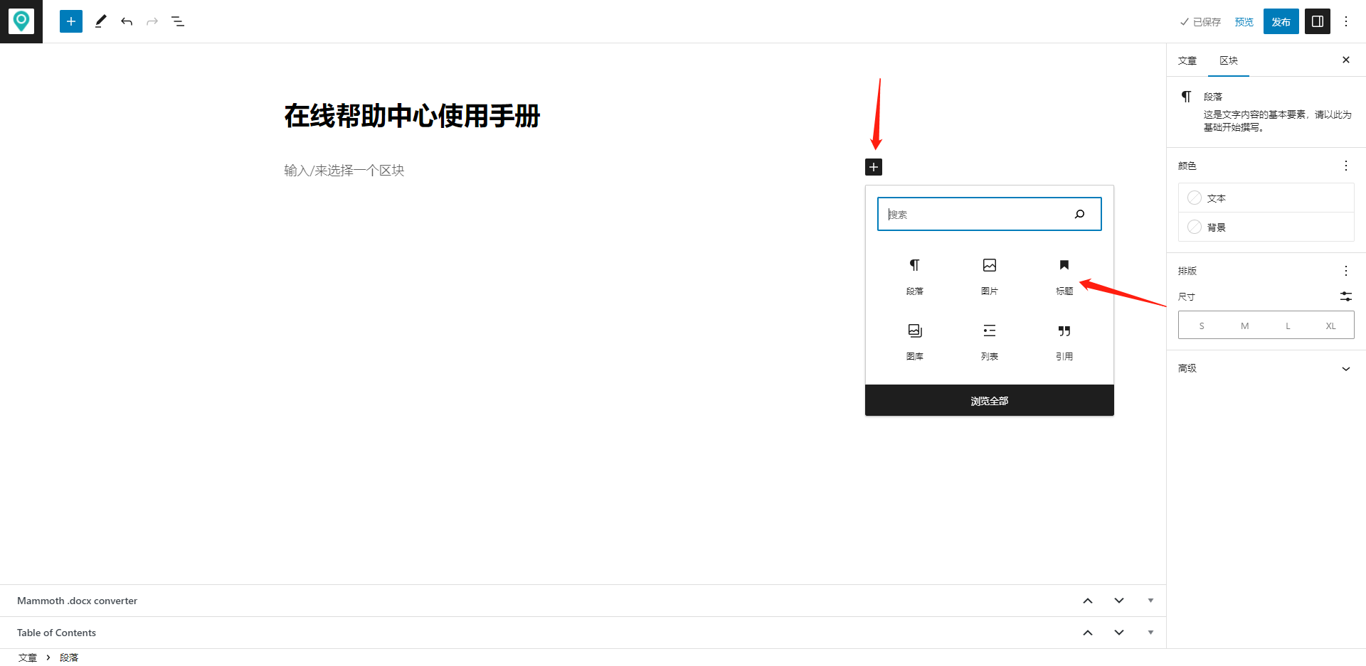 - 添加区块,输入内容