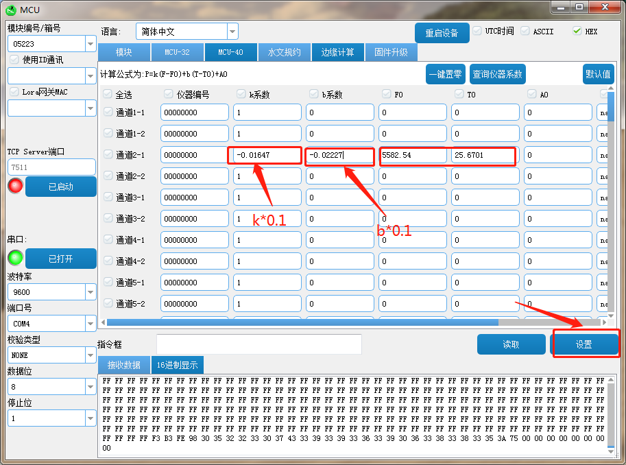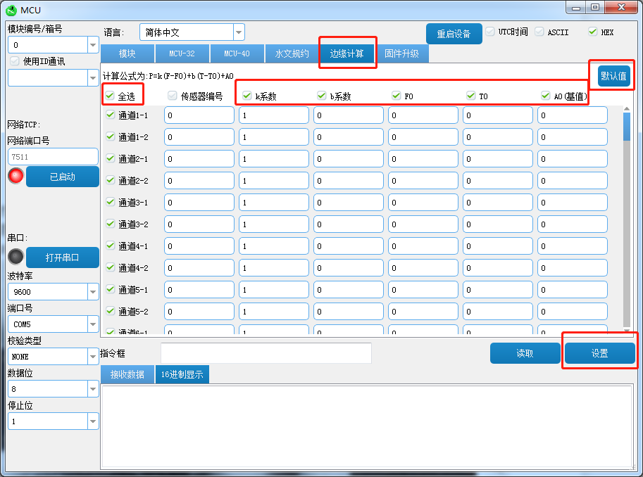 设置传感器计算系数(配置对应通道-1即可,比如通道1-1,通道2-1)