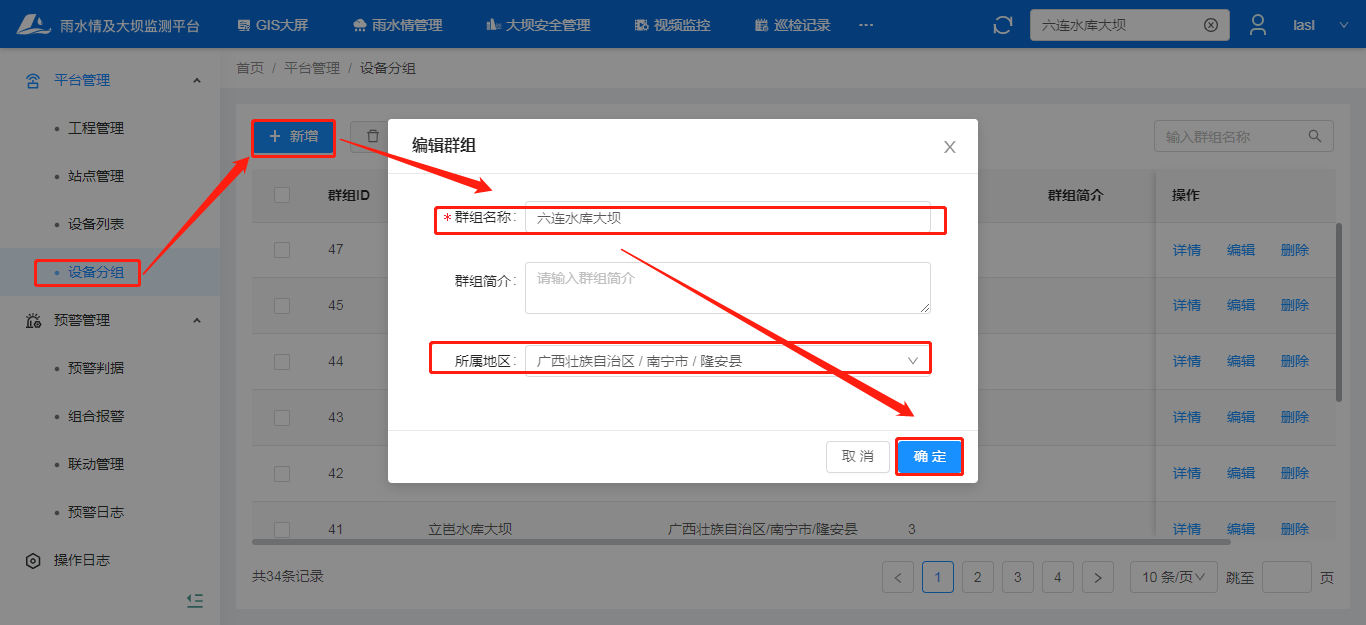 新建分组:项目管理—设备分组—新;
