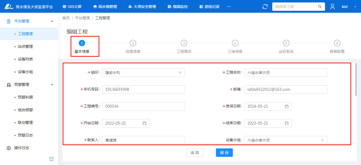 填写基本信息-地理信息-工程图纸-三维信息-坐标系统-解算配置-保存;