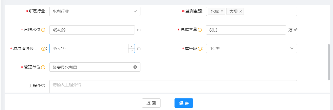 填写总库容量、汛限水位、溢洪道堰顶数值;