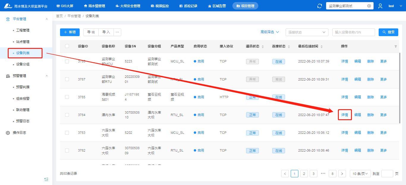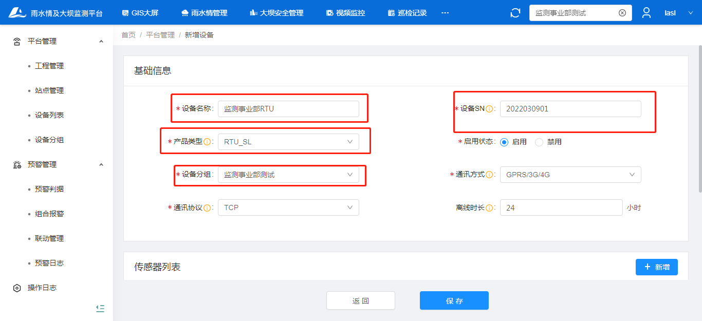 新增设备:项目管理—设备列表—新增;