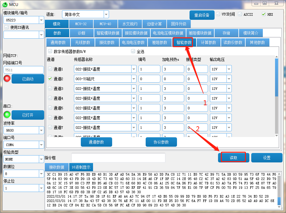 选择智能参数读取配置;